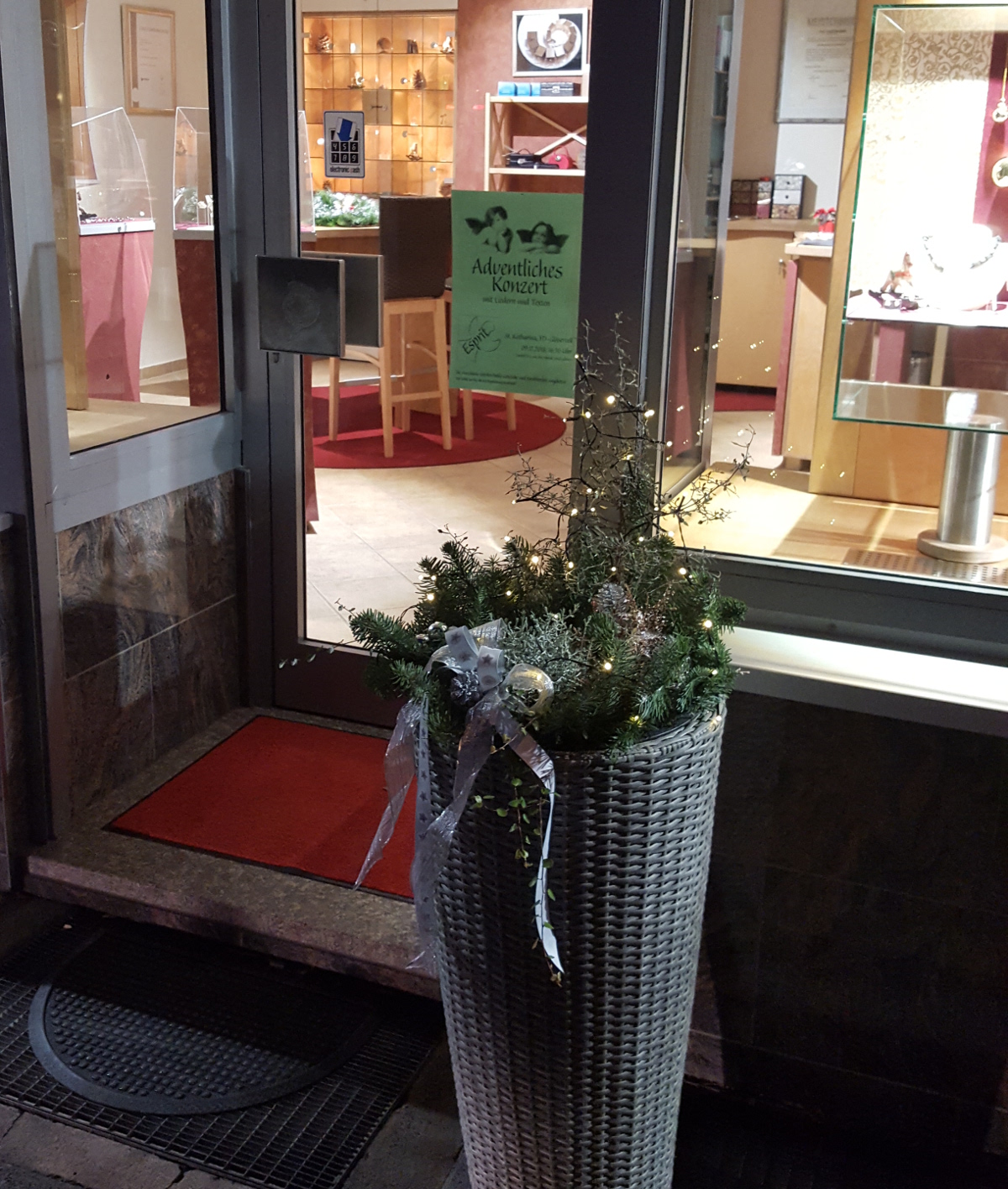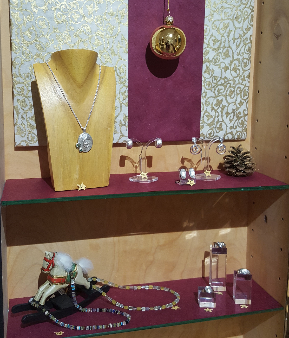Es ist weihnachtlich geworden in der Goldschmiede. Die kleinen Schaukelpferdchen bewachen den Schmuck, der sich im Glanz der Kugeln widerspiegelt. Es duftet nach Zimt und Nelken und der Plätzchenteller steht gefüllt bereit. In gemütlicher Atmosphäre finden Sie IHR Weihnachtsgeschenk. Für leuchtende Augen zum Fest.